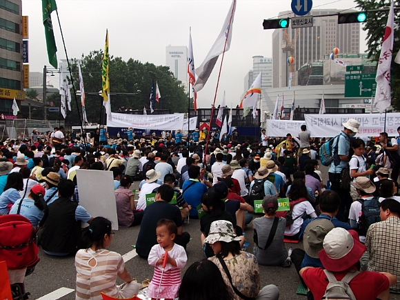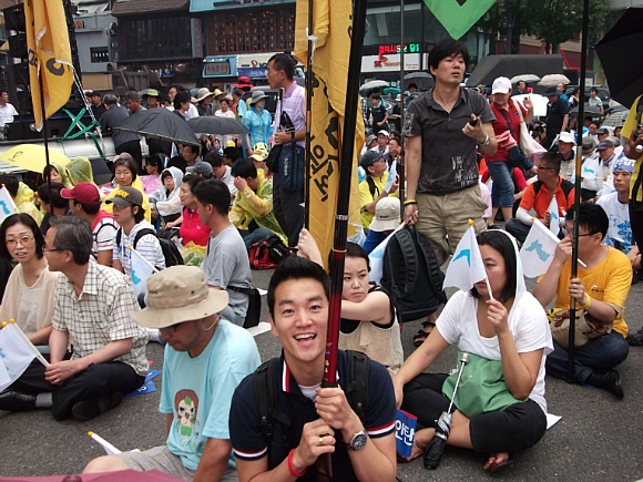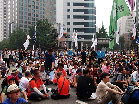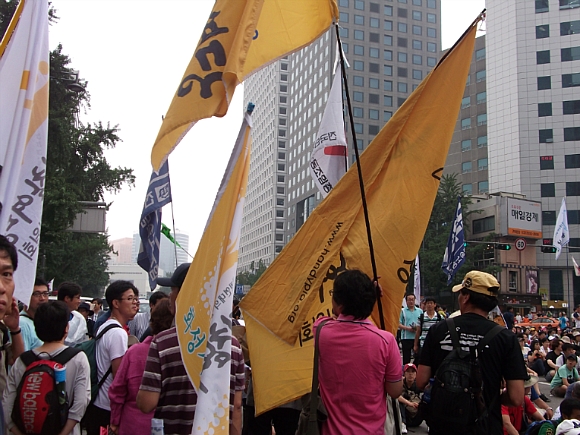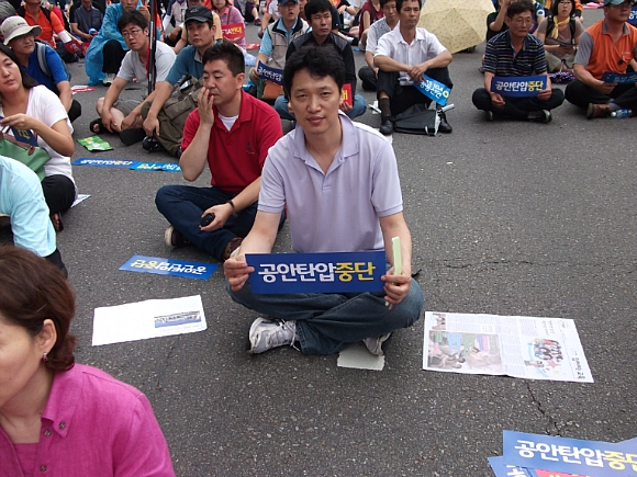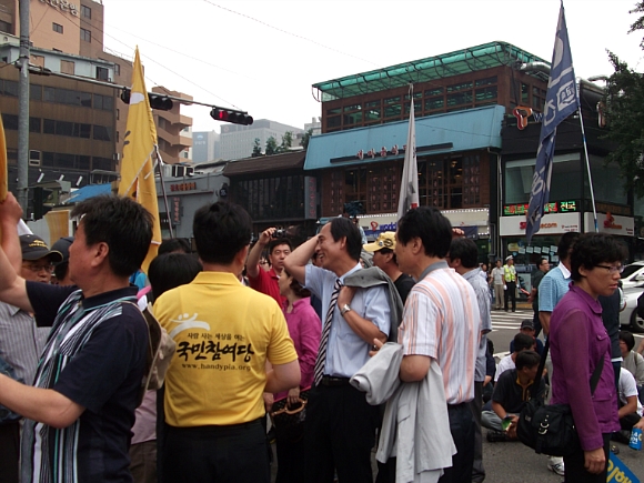 ½Ãû ¾Õ ¼¿ï±¤ÀåÀº º¸¼ö´ÜüµéÀÌ 8.15 ¹ü±¹¹Î´ëȸ¿Í ½Ã°£À» µü ¸ÂÃç ¸ÂºÒ Çà»ç¸¦ Çϱâ À§ÇØ