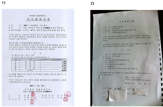 | ¾Èö¼ö, °ø½Ä ¼·ù¿¡ ³ª¿À´Â ÀÌ»óÇÑ Á¡     ¹Ì·¡°æ¿µ¿¬±¸¼Ò ¼ÒÀå Ȳ Àå ¼ö       1. ¾Èö¼ö ¿øÀåÀº ÀÚ±â ÁýÀ» µÎ°í ¿Ö ¼ö¼ ¿ÀÇǽºÅÚÀ» ÁÖ¼ÒÁö·Î ÇßÀ»±î?   µî±âºÎ»ó¿¡ µû¸£¸é ¾Èö¼ö ¿øÀåÀº 2002³â 3¿ù 25ÀÏ ÁÖ¼Òº¯°æÀ» ÇØ¼ 2004³â 2¿ù 2ÀϱîÁö °³² ¼ö¼µ¿ 724¹øÁö¿¡ ÀÖ´Â ·ÎÁîµ¥ÀÏ ¿ÀÇǽºÅÚ 1315È£¸¦ ÁÖ¼ÒÁö·Î ÇÏ¿´´Ù. ¾Èö¼ö ¿øÀåÀº ºÎÀθíÀÇ·Î 2001³â 10¿ù 11ÀÏ ¼ÛÆÄ±¸ ¹®Á¤µ¿ ¼ÒÀç ¿Ã¸²ÇÈÆÐ¹Ð¸® ¾ÆÆÄÆ® 209µ¿ 606È£¸¦ ¸ÅÀÔÇÏ¿´´Ù. ¸ÖÂÄÇÑ ÁýÀ» µÎ°í ±×´Â ȸ»ç ±Ùó ¿ÀÇǽºÅÚÀ» ÁÖ¼ÒÁö·Î ÇÑ °ÍÀÌ´Ù. 2002³â ´ç½Ã ¾Èö¼ö¿¬±¸¼Ò´Â °³² ¼ö¼µ¿ 724¹øÁö V-º§¸®ºôµù 8Ãþ¿¡ ÀÖ¾ú´Ù. ºÎÀÎÀº 2002³âºÎÅÍ À¯ÇÐÀ» °¬´Ù.     2. ³ª´Â ¾Èö¼ö ¿øÀå ÃøÀÌ Áö³ 9¿ù 21ÀÏ °ø°³ÇÑ ÀÌ»çȸ ȸÀÇ·ÏÀÌ Á¶ÀÛµÈ À§Á¶¶ó°í ÁÖÀåÇØ¿Ô´Ù.   À§ »çÁøÀ» º¸¸é  1)Àº ³»°¡ È®º¸ÇÑ ¿©·¯ ÀÌ»çȸ ȸÀÇ·Ï Áß ÇϳªÀÌ°í  2)´Â ¾Èö¼ö ÃøÀÌ °ø°³ÇÑ ÀÌ»çȸ ȸÀÇ·ÏÀÌ´Ù.   1)Àº µµÀåÀÌ ÂïÇôÀÖ°í 2)´Â Âü¼®À̻簡 ½ÎÀÎÀ» ÇÑ °ÍÀ¸·Î µÇ¾îÀÖ´Ù. 2001³â 9¿ù »óÀåÀ» À§ÇØ ±Ý°¨¿ø µî¿¡ µî·ÏµÈ ¼·ù´Â 1)°ú 2)ÀÇ ÇüÅ Áß ¾î¶² °ÍÀÌ ¸Â´Â°¡? ¾Æ´Ï¸é ¶§·Î´Â µµÀåÀ» Âï±âµµ Çß°í ¶§·Î´Â ½ÎÀÎÀ» Çߴ°¡? ¾î¶² ÇüŰ¡ Áøº»ÀÎÁö ¹àÈ÷±â¸¦ ¿øÇÑ´Ù.   3. ÀÌÆ² Àü ³ª´Â ¾È·¦ÀÌ ÀüÁ÷ Çѱ¹ MS »çÀåÀÌÀÚ, ¾È·¦ »óÀÓ°í¹®À¸·Î ÃßÁ¤µÇ´Â À¯¸ð¾¾¿¡°Ô ´ç½Ã ÁֽĽü¼³ª Ÿ CB ¹ßÇà°¡°Ýº¸´Ù ÈξÀ ³·Àº Çæ°ªÀÎ 5000¿ø¿¡ Àüȯ»çä(CB)¸¦ ¹ß±ÞÇÑ »ç½ÇÀ» ÁöÀûÇÑ ¹Ù ÀÖ´Ù. ÀÌÈÄ ¾î¶² ºÐÀÌ ³»°¡ ¹Ùºü¼ ãÁö ¸øÇÑ °ÍÀ» º¸¿©ÁÖ¾ú´Ù. ¾Æ·¡ ³»¿ëÀº MS»ç¿Í ¾È·¦ÀÌ ¸ÎÀº ¡ºMS À©µµ¿ì ¼¹ö º¸¾È¼ºñ½º Àü·« Á¦ÈÞü°á¡» °ø½Ã³»¿ëÀÌ´Ù. Çæ°ª ¹ßÇà°ú ÀÌ °ø½Ã³»¿ëÀº ¼·Î ¹«½¼ »ó°üÀϱî?   ±âŸ ÁÖ¿ä°æ¿µ»çÇ׿¡ ´ëÇÑ °ø½Ã 1. Á¦¸ñ: MS À©µµ¿ì ¼¹ö º¸¾È ¼ºñ½º¸¦ À§ÇÑ Àü·«Àû Á¦ÈÞ Ã¼°á
