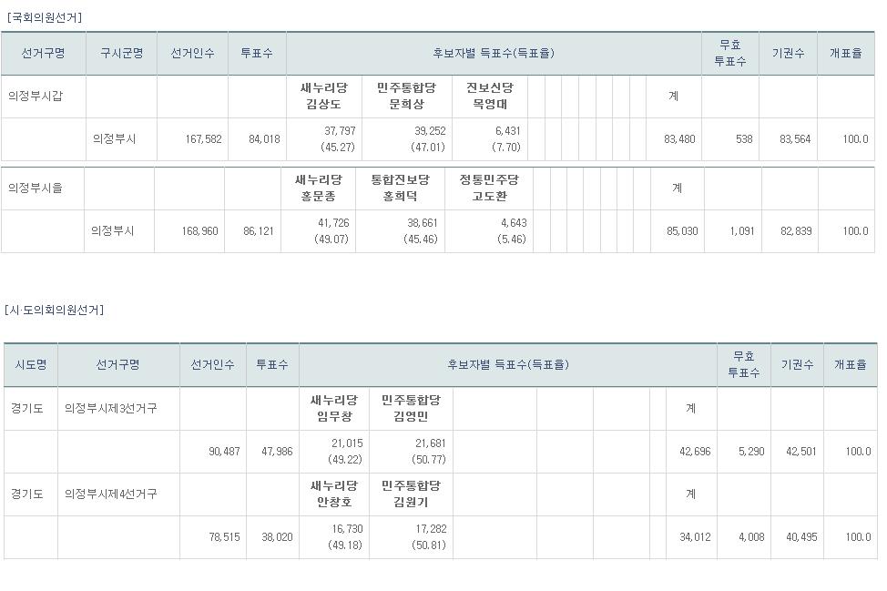 ÀÌ·¸°Ô ³× ±ºµ¥ ¼±°Å°¡ ÀÖ¾ú°í, µµÀÇ¿ø ¼±°Å±¸ 3, 4´Â ±¹È¸ÀÇ¿ø (À») ¼±°Å±¸¿Í Áö¿ªÀÌ Áߺ¹µÈ´Ù.