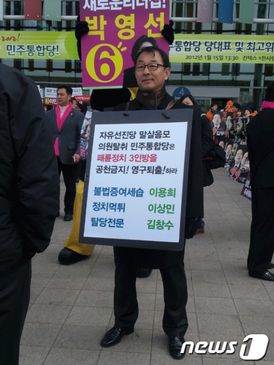 ÀÚÀ¯¼±Áø´ç û³âÀ§¿øÀåÀÎ ¼ÛÁ¾È¯(50¼¼, ´ëÀü À¯¼º±¸ °ÅÁÖ)¾¾´Â 15ÀÏ, ¹ÎÁÖ´ç Àü´ç´ëȸ°¡ °³ÃֵǴ ÀÏ»ê ŲŨ½º Á¤¹®¿¡¼ ¼±Áø´çÀ» Å»´çÇØ ¹ÎÁÖ´çÀ¸·Î ÀÌÀûÇÑ ÀÌ¿ëÈñ, ÀÌ»ó¹Î, ±èâ¼ö ÀÇ¿øÀÇ ÀºÅ𸦠Ã˱¸ÇÏ´Â 1ÀΠħ¹¬½ÃÀ§¸¦ ¹ú¿´´Ù.