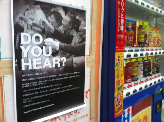 ¼ ±³¼ö°¡ ¼Ò°³ÇÑ »çÁø ¼Ó Æ÷½ºÅÍ¿¡´Â 'DO YOU HEAR?(µé¸®³ª¿ä?)'¶õ Á¦¸ñÀ¸·Î ÀϺ»±º À§¾ÈºÎ ÇҸӴϵéÀÇ »çÁø°ú ÇÔ²²"À̵éÀÇ ¿ÜħÀÌ µé¸®½Ã³ª¿ä? À̵éÀº Á¦2Â÷ ¼¼°è´ëÀü ´ç½Ã 'ÀϺ»±º À§¾ÈºÎ'·Î »ì¾Æ¾ß Çß´ø ÇÇÇØÀÚµéÀÔ´Ï´Ù"¶õ ¼³¸íÀÌ ÀϺ»¾î·Î ÀûÇôÀÖ´Ù.