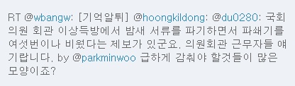 ""±¹È¸ÀÇ¿ø ȸ°ü ÀÌ»óµæ¹æ¿¡¼ ¹ã»õ ¼·ù¸¦ ÆÄ±âÇÏ¸é¼ ÆÄ¼â±â¸¦ ¿©¼¸¹øÀ̳ª ºñ¿ü´Ù´Â Á¦º¸°¡ ÀÖ±º¿ä. ÀÇ¿øÈ¸°ü ±Ù¹«ÀÚµé ¾ê±â¶ø´Ï´Ù."