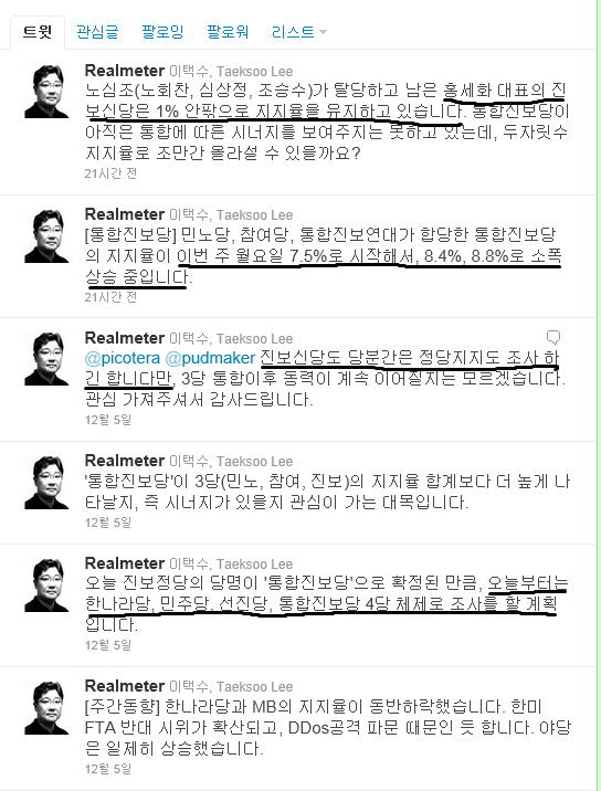 À§ ÀÌÅüö ¸®¾ó¹ÌÅÍ ´ëÇ¥ÀÇ Æ®À ÂüÁ¶. 12¿ù 5ÀϺÎÅÍ Çѳª¶ó´ç, ¹ÎÁÖ´ç, ¼±Áø´ç, ÅëÇÕÁøº¸´ç 4´ç üÁ¦·Î Á¶»çÇÑ´Ù ÇÔ.
