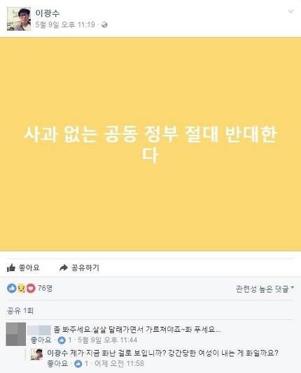 ´ñ±ÛÀÌ Àç¹Ì³ª´Ù. »ì»ì ´Þ·¡°¡¸é¼ °¡¸£Ãľߵȴٰí ÇÏ´Ï °°£´çÇÑ ¿©¼º¿¡ Á¤ÀÇ´çÀ» ºñÀ¯ÇÑ´Ù. ±×·¯¸é¼ °ø½ÄÀûÀÎ »ç°ú¸¦ ÇѸ¶µð¸¸ Çϸé ÀúÁÖ¸¦ Ç®°í ¸ðµç °ÍÀ» ¿ø·¡´ë·Î µ¹¸®°Ú´Ù? °°£´çÇÑ ¿©¼ºÀÌ »ç°ú ÇѸ¶µð¸¸ ÀÖÀ¸¸é ¸ðµç ¿ø¸ÁÀ» ÇÏÁö ¾Ê°Ú´Ù´Â °ÍÀΰ¡?