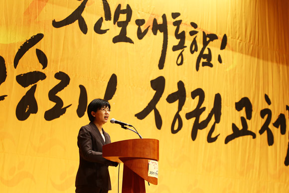 ´ëÀÇ¿øµéÀº ¡°À̸í¹Ú Á¤±Ç 3³â ±¹³ÀÇ À§±â¿¡ Ã³ÇØ ÀÖ´Ù¡±¸é¼ ¡°2012³â ¿ø³»±³¼·´Üü ±¸¼º°ú Áøº¸Àû Á¤±Ç±³Ã¼¸¦ ¹Ýµå½Ã ½ÇÇöÇϰڴÙ. ½Â¸®ÀÇ Áö¸§±æÀº Áøº¸Á¤Ä¡¼¼·ÂÀÇ ´ëÅëÇÕÀ» ½ÇÇöÇϴµ¥ ÀÖ´Ù¡±°í ¹àÇû´Ù.