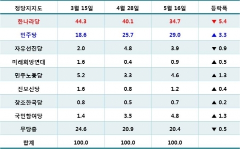 (À§ Á¤´çº° ÁöÁöÀ² µµÇ¥´Â ¸ð³ë¸®¼Ä¡ 2011³â 5¿ù 18ÀÏ Á¶»ç°á°ú ¸ð´×´º½º Àοë)