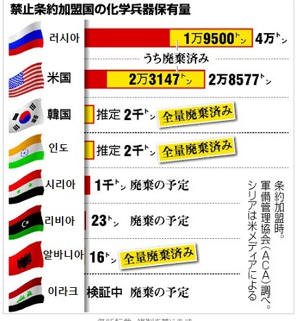 À§ÀÇ ±×¸²À» º¸°í, óÀ½ ¾È °ÍÀº ¼¼°³. 1. °¡¸Í±¹Áß, ÈÇй«±â º¸À¯·®ÀÌ Çѱ¹ÀÌ 3À§¿´°í, 2. ±× ¾çÀÌ ½Ã¸®¾Æº¸´Ù ¸¹¾Ò´Ù´Â °Í°ú, 3. À̽º¶ó¿¤ÀÌ ¼øÀ§¿¡ µé¾îÀÖÁö ¾Ê´Ù´Â °Í. (¾Æ¸¶µµ, °¡¸Í±¹ÀÌ ¾Æ´Ñ µí...ºÐ¸í, °¡Áö°í ÀÖÀ»ÅÙµï...¤Ñ¤Ñ+..) ¾Æ»çÈ÷½Å¹® 0915-2013 «·«ê«¢ª¬ûù学ܲÐïÐ×ò条峪ËÊ¥Øï¡¡ 続ª¯内戦¡¢廃Ñ¥Ññùþªâ ½Ã¸®¾Æ°¡ ÈÇк´±â ±ÝÁöÁ¶¾à(CWC)¿¡ °¡ÀÔ ±×·¯³ª °è¼ÓµÇ´Â ³»ÀüÀ¸·Î, Æó±â¼ö¼ø¿¡´Â ³Ç×ÀÌ ¿¹»ó UNÀº 14ÀÏ, ½Ã¸®¾Æ°¡ ÈÇк´±â ±ÝÁöÁ¶¾à(CWC)¿¡ °¡ÀÔÇß´Ù°í ¹ßÇ¥Çß´Ù. °¡ÀÔ¹®¼°¡ 14ÀÏ, ¹Ý±â¹® »ç¹«ÃÑÀå¿¡°Ô ±âŹ(Ðööþ)µÇ¾î, 190¹øÂ° Á¶¾à±¹ÀÌ µÆ´Ù. CWC ±ÔÁ¤¿¡µû¶ó, Á¶¾à¹ßÈ¿´Â 30ÀÏÈÄ ´ÙÀ½´Þ 14ÀÏÀÌ´Ù. ³»ÀüÁßÀÎ ½Ã¸®¾ÆÀ̳ª CWC±ÔÁ¤ÀÇ ¹ßÈ¿ ¹× ÀÌÇà¿¡´Â ¿¹¿Ü°¡ ¾ø¾î, ½Ã¸®¾Æ³» ÈÇк´±â ¿ÏÀüÆó±â ÀÛ¾÷Àº ³Ç×À» °ÝÀ» µíÇÏ´Ù. CWC´Â °¡¸Í±¹¿¡°Ô °¢Á¾ ÈÇк´±âÀÇ °³¹ß.»ý»ê.ÀúÀå.»ç¿ëÀ» ±ÝÁö½Ã۰í, º¸À¯Çϰí ÀÖ´Â ÈÇк´±â¸¦ ´Ü°èÀûÀ¸·Î ¿ÏÀü Æó±âÇÒ °ÍÀ» Àǹ«È Çϰí ÀÖ´Ù. °¡¸Í±¹Àº ÈÇк´±âÀÇ º¸À¯·®°ú ÀúÀåÀå¼Ò¸¦ ½Å°íÇØ¾ß Çϸç, ÈÇк´±â±ÝÁö ±â°ü(OPCW)ÀÌ Á¶¾àÀ§¹ÝÀ» °¨½ÃÇÏ°Ô µÈ´Ù. ½Ã¸®¾ÆÀÇ °æ¿ì, Áö³ 14ÀÏÀÇ ¹Ì±¹.·¯½Ã¾Æ ¿Ü¹«Àå°ü ÇÕÀÇ·Î, 1ÁÖÀÏÀ̳»¿¡ º¸À¯ ÈÇй«±â ¹× °ü·Ã½Ã¼³ÀÇ ¿ÏÀüÇÑ ¸®½ºÆ®¸¦ Á¦ÃâÇϵµ·Ï ¿ä±¸¹ÞÀº »óŶó, ½Ã¸®¾ÆÁ¤ºÎ´Â CWC Á¶¾àÀÇ È¿·ÂÀÌ ¹ßÈ¿µÇ±âµµ Àü¿¡ ÈÇк´±â Æó±â¸¦ À§ÇÑ Àçºü¸¥ ´ëÀÀ ¹× ÀýÂ÷¸¦ ÀÌÇàÇÏÁö ¾ÊÀ¸¸é ¾ÈµÈ´Ù. ³¡. ..... ÇÑ¹ß »ß²ýÇϸé......¾ÆÁ¶.....