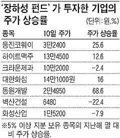 ù°, ¼Ò¾×ÁÖÁÖ ÀÌÀÍÃß±¸³ª ÁֽĽÃÀå °ÇÀüÈ °°Àº ¼ÒÀ§ ¡ºÀåÇϼº ºê·£µå¡»¸¦ ¹«»öÄÉ ÇÒ ¸¸Å ¡ºÅõ±â¡»ÀÇ ¼º°ÝÀÌ ¿³º¸Àδٴ Á¡ÀÌ´Ù. ÀåÇϼºÆÝµå°¡ ÇÑâ ÁֽĽÃÀåÀ» ¶ß°Ì°Ô ´Þ±¸´ø 2006³â ¸» °æ¿¡ ³ª¿Â Áõ±Ç °ü·Ã ±â»çµéÀ» º¸¸é, Çϳª°°ÀÌ ¡°Áõ±Ç°¡´Â ÀåÇϼºÆÝµå°¡ ¾îµð¿¡ ÅõÀÚÇÒ Áö Ã˰¢À» °ïµÎ¼¼¿ì°í ÀÖ´Ù¡±°í ¾ð±ÞÇϰí ÀÖ´Ù. ¿Ö³ÄÇÏ¸é ´ç½Ã ÀåÇϼºÆÝµå°¡ ÅõÀÚÇÑ Å±¤±×·ì °è¿»ç ´ëÇÑȼ¶ ÁÖ½ÄÀº ÀÌÀü 5~6¸¸¿ø´ë¿¡¼ ÅõÀÚ ÈÄ ¼ö °³¿ù ¸¸¿¡ ÃÖ°í°¡ 20¸¸¿ø´ë±îÁö Ä¡¼ÚÀ¸¸ç ¹«·Á 300% °¡·® ±ÞµîÇ߱⠶§¹®ÀÌ´Ù. ´ç½Ã »óȲÀÌ ±×·¸´Ùº¸´Ï Áõ±Ç°¡¿¡¼´Â ÀåÇϼºÆíµå¿¡ °ü½ÉÀ» °¡Áú ¼ö ¹Û¿¡ ¾ø¾ú´Ù. ÀÌ ÆÝµå°¡ ÅõÀÚÇÒ Á¾¸ñÀ» ¹Ì¸® ¸ÅÀÔÇØ ³õÀ¸¸é ´ë¹ÚÀ» ÅÍÆ®¸± ¼öµµ Àֱ⠶§¹®À̾ú´Ù.