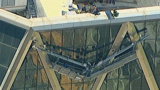 ¹Ì±¹ ´º¿å½Ã ¸ÇÇÏź ÇѰ¡¿îµ¥ À§Ä¡ÇÑ 46Ãþ °Ç¹° Ç㽺ƮŸ¿ö(The Hearst Tower) ¿Üº® À¯¸®Ã¢À» û¼ÒÇϴ û¼ÒºÎ 2¸íÀ» Å¿î û¼Ò¿ë ¹ßÆÇÀÇ °¡¿îµ¥°¡ ºÎ·¯Áö´Â »ç°í·Î, 43Ãþ º®¸éÀ¯¸®¸¦ Á¦°ÅÇÏ°í ±¸Á¶ÇÏ´Â ¼Òµ¿ÀÌ ¹ú¾îÁ³´Ù.