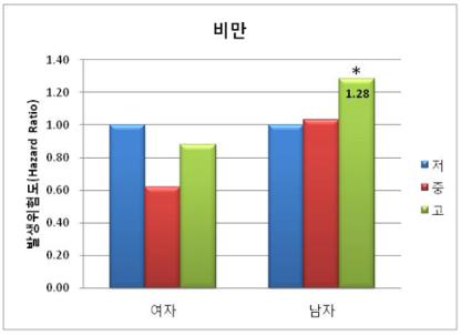 Á¶»ç ´ë»óÀÚ Áß ´ë»çÁõÈıºÀÌ ¹ß»ýÇÑ »ç¶÷Àº 1896¸íÀ¸·Î ÀüüÀÇ 13.7%¸¦ Â÷ÁöÇßÀ¸¸ç, À̸¦ ¿ì¸®³ª¶ó Àα¸ 1000¸í´ç 1³â°£ ¹ß»ý¼ö·Î ȯ»êÇÏ¸é ³²¼º 39.1¸í, ¿©¼º 26.9¸í¿¡ ÇØ´çµÈ´Ù ƯÈ÷ ³²¼ºÀÇ °æ¿ì ÷°¡´çÀ» Àû°Ô ¼·ÃëÇÏ´Â ±×·ì(8g/day ÀÌÇÏ)º¸´Ù ³ôÀº ±×·ì(22g/day ÀÌ»ó)¿¡¼ ´ë»çÁõÈıºÀÇ ¿äÀÎ Áß ºñ¸¸ À§ÇèÀº 28%, °íÁß¼ºÁö¹æÇ÷Áõ À§ÇèÀº 22%, ÀúHDLÄÝ·¹½ºÅ×·ÑÇ÷Áõ À§ÇèÀº 35% °¡·® Áõ°¡ÇÏ´Â °ÍÀ¸·Î Á¶»çµÆ´Ù.