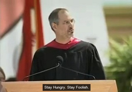 "Stay Hungry, Stay Foolish"(Ç×»ó °¥¸ÁÇϼ¼¿ä, ¿ìÁ÷ÇÏ°Ô ¸»ÀÔ´Ï´Ù)" À̰оÆÁ¶ À¯¸íÇÑ ¸»ÀÌ¿©.